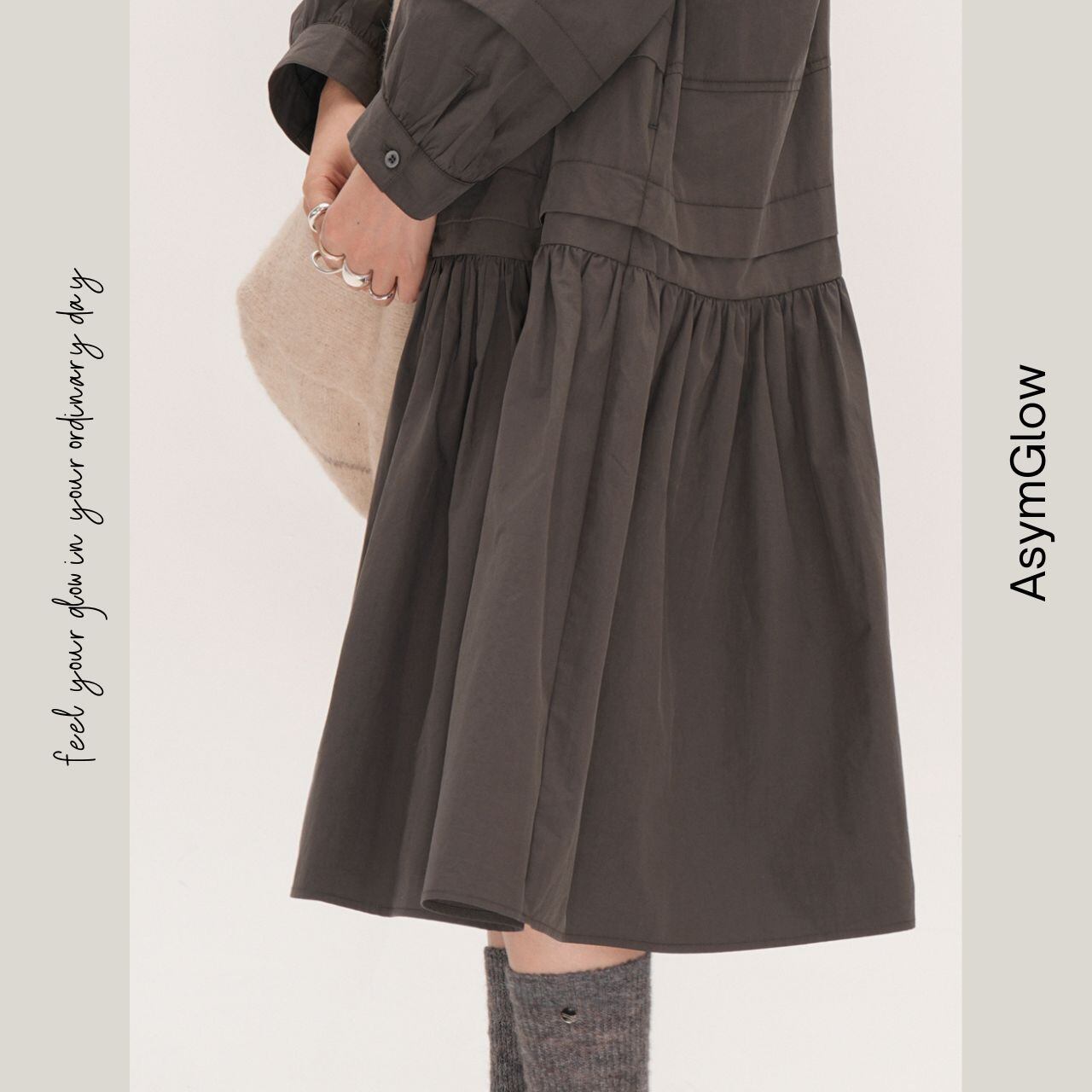 ボタンフロントデザインが上品な印象を与えるミモレ丈ワンピース。