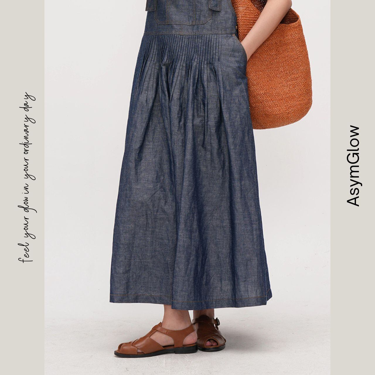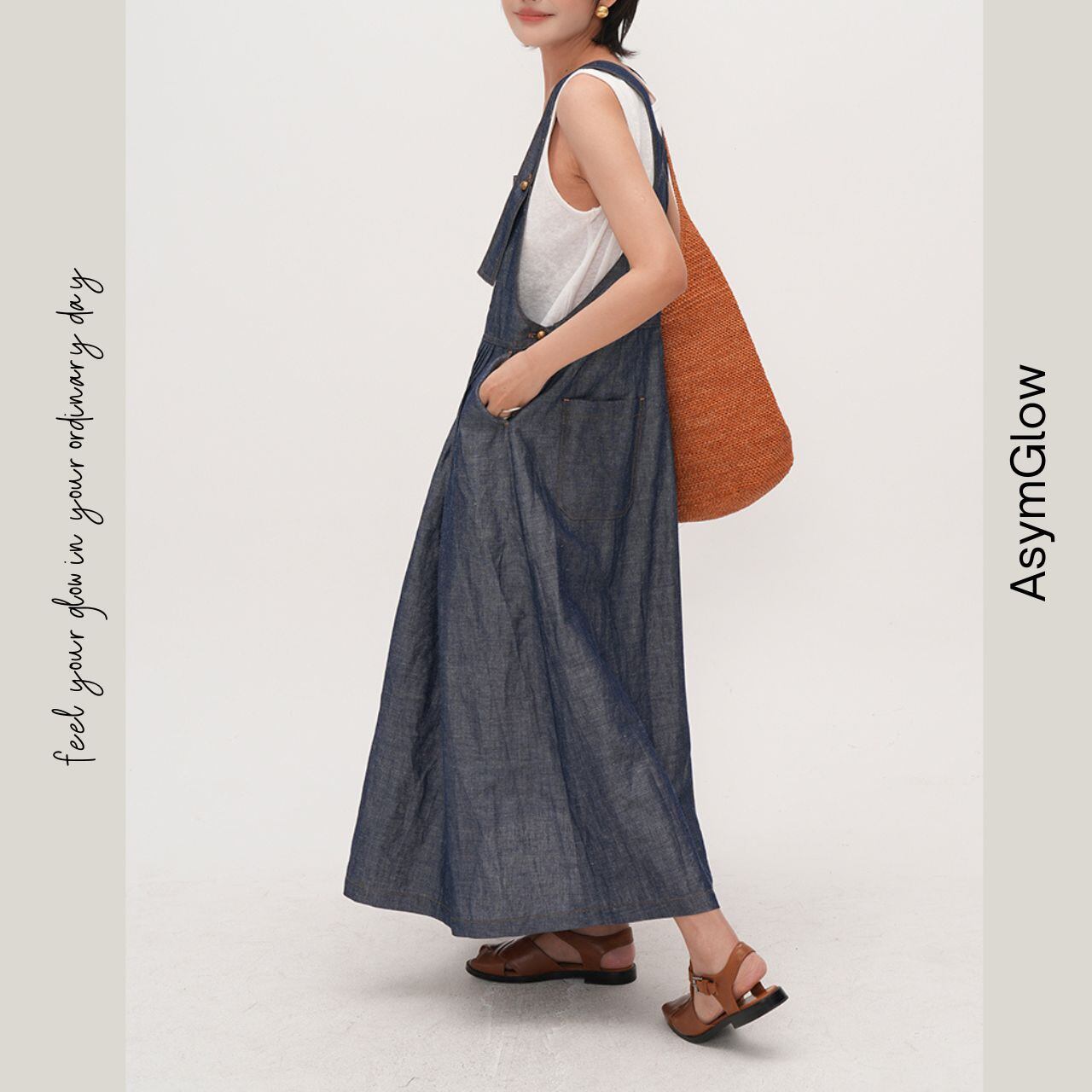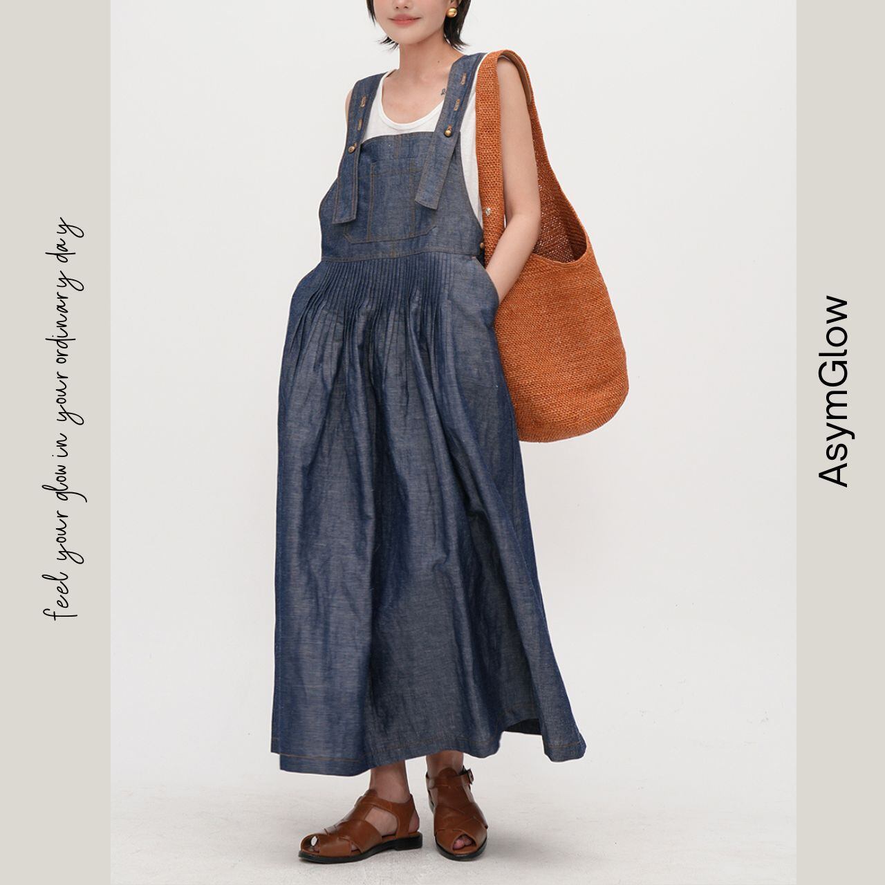 プリーツデザインが目を引くマキシ丈ジャンプスーツ。