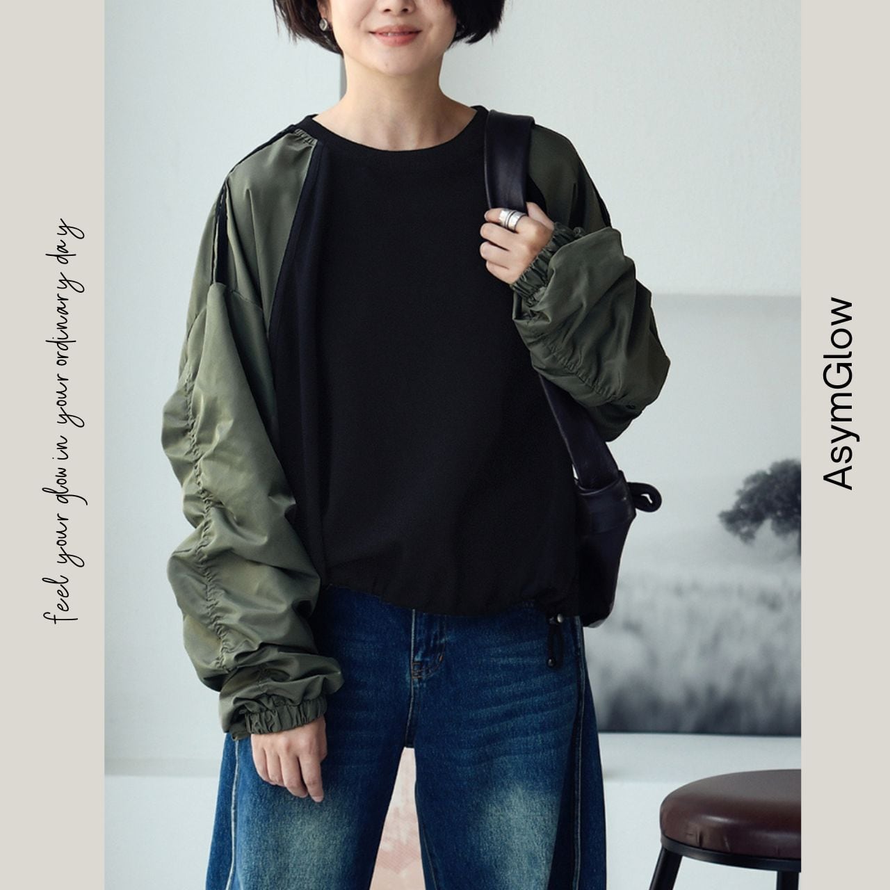 ラグランスリーブで肩周りが動かしやすく、リラックスした着心地です。