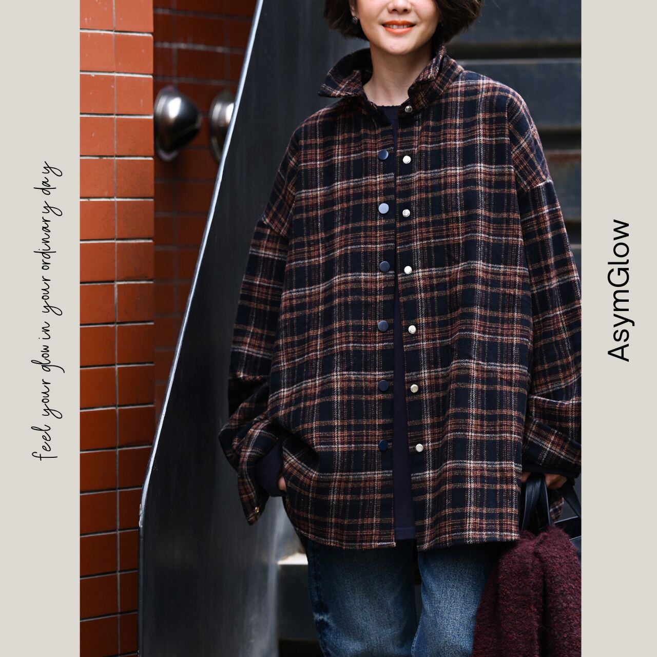 カジュアルな着こなしにぴったりのチェック柄長袖シャツ。