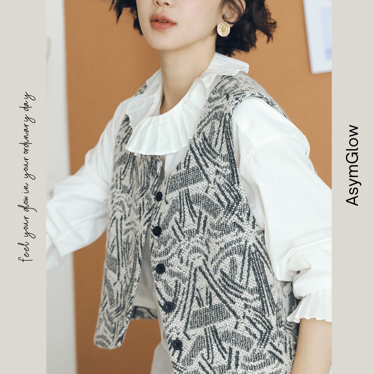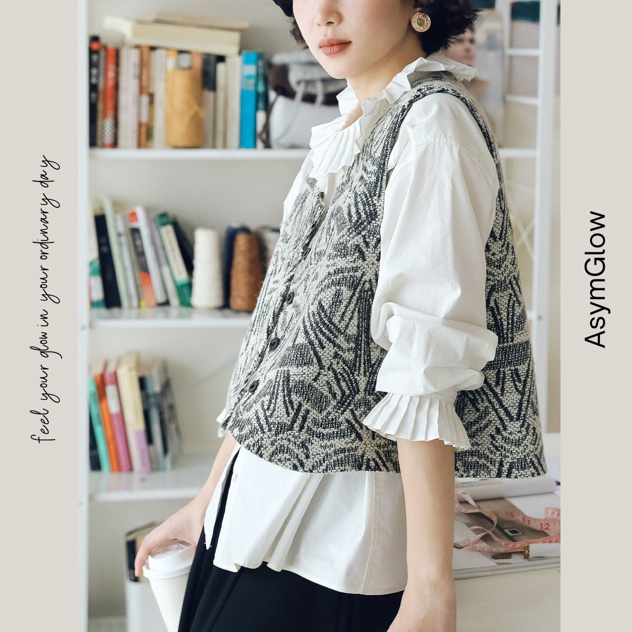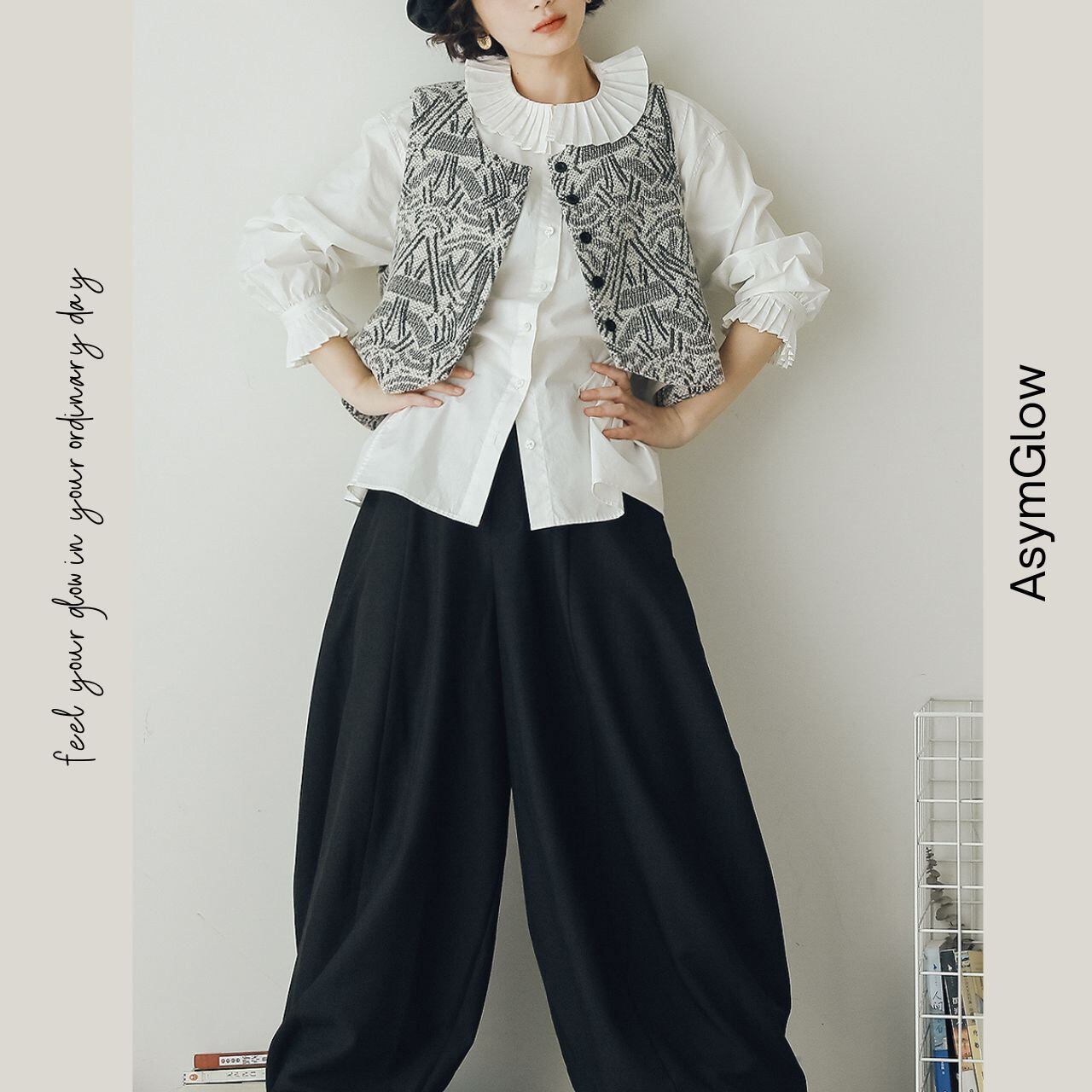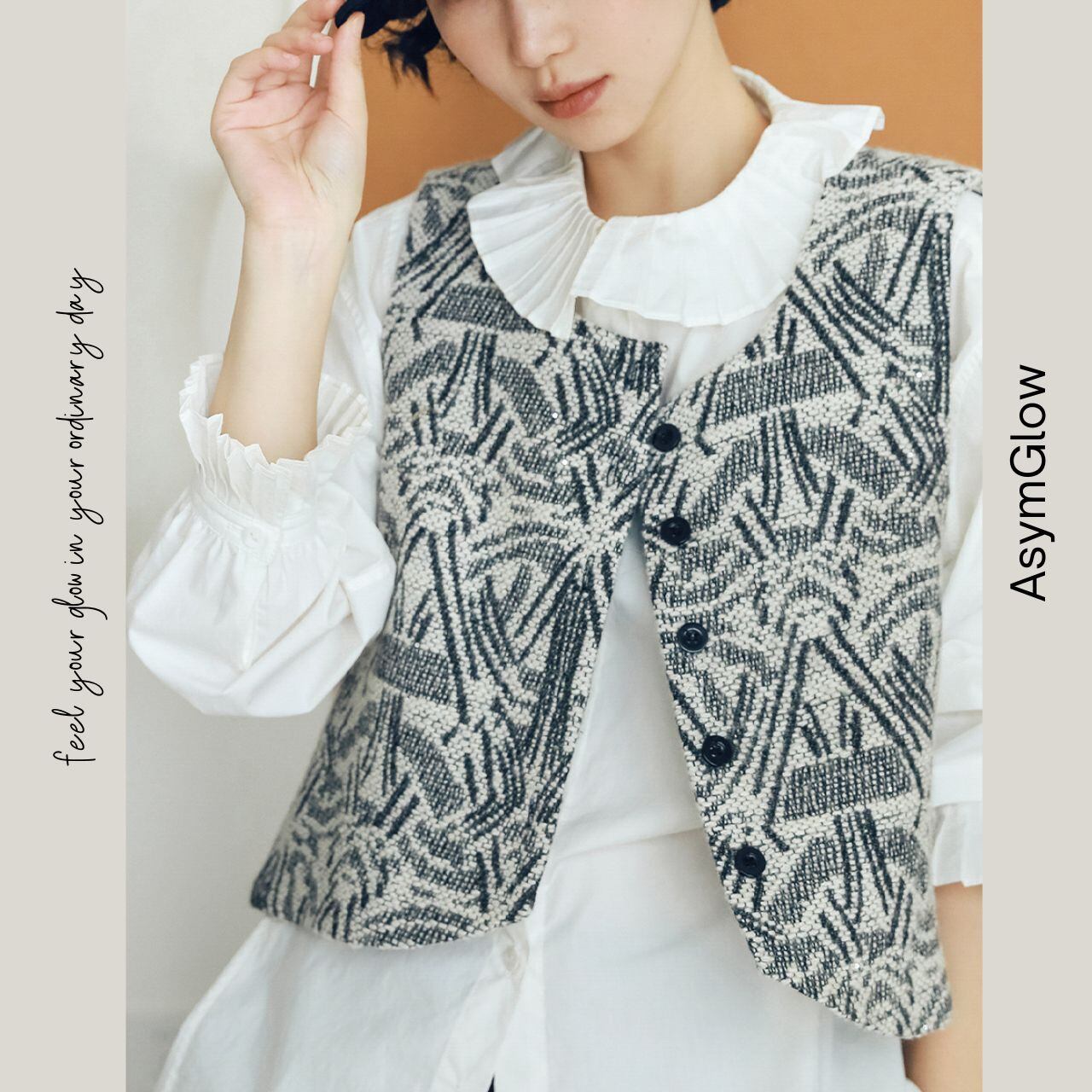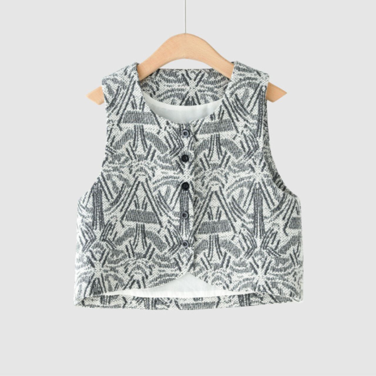 クロップド丈のノースリーブベストは、都会的で洗練された印象を与えます。